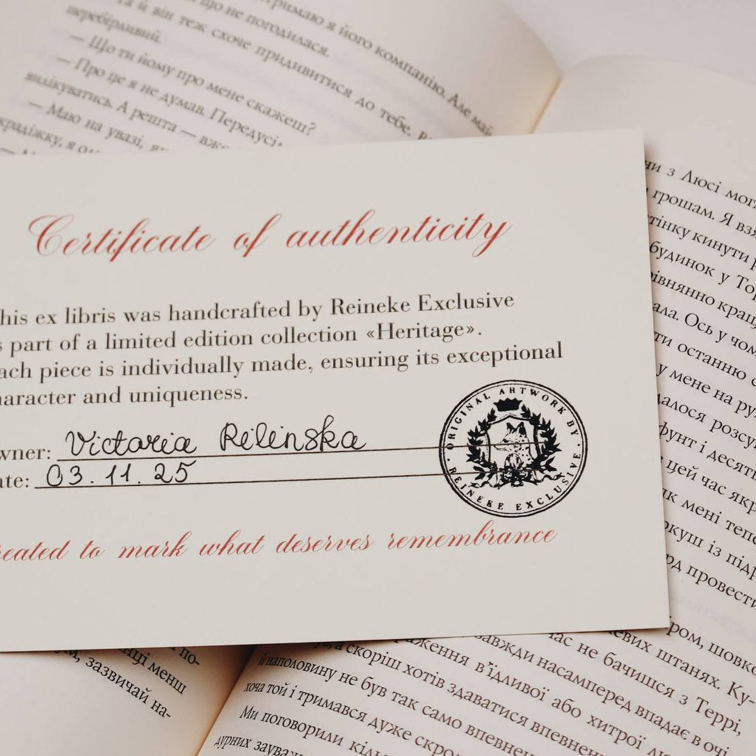 Це — вишукана лімітована колекція екслібрисів у вінтажному стилі, яка покликана нагадати про вічні цінності, кохання та історії, які живуть століттями.